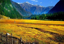 甘海子风景区位于九寨沟县城以西65公里处,平均海拔2200米左右,为川西山地少见的天然湿地,这里碧水蓝天、绿草如茵、森林茂密、风光秀丽,占地150亩的九寨天堂国际会议度假中心具有国际一流水平,即将建成对游人开放。